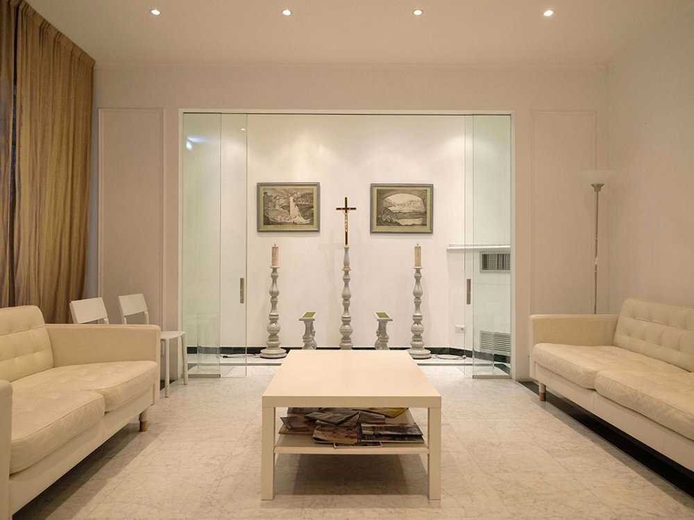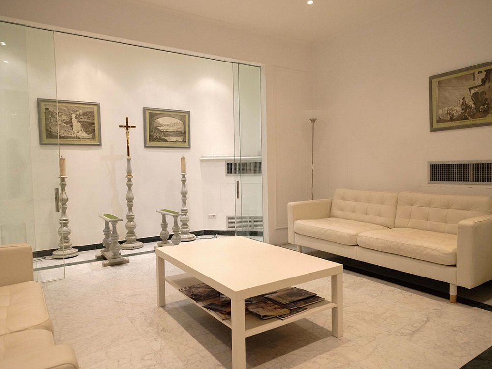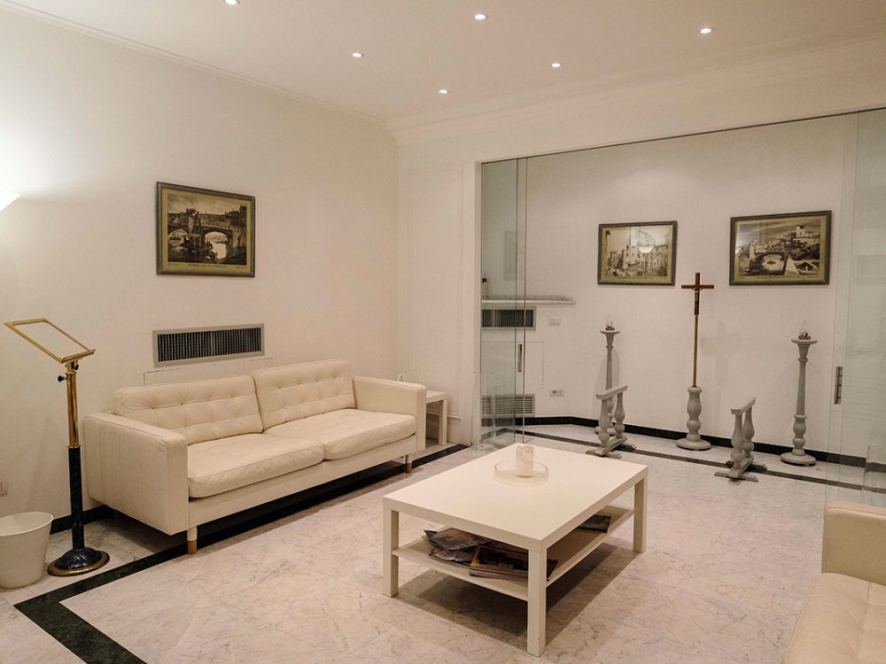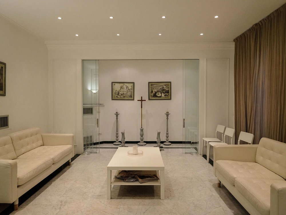All’interno delle tre cappelle del commiato le famiglie possono riunirsi, stringersi intorno ai propri cari per dare l’estremo saluto alla persona defunta, tutto nell’intimità raccolta di uno spazio interamente riservato. Gli arredamenti sono eleganti e distinti: in marmo bianco, con tappeto e una quantità di seggiole, per chi vuole accomodarsi e trascorrere del tempo insieme al defunto e ai suoi familiari. L’atmosfera è sobria, essenziale, di buon gusto. Decisamente lontana da molte camere mortuarie, fredde , asettiche e impersonali. Si tratta, al contrario, di luoghi in grado di accogliere e avvolgere, di far sentire le persone a proprio agio e rassicurate.